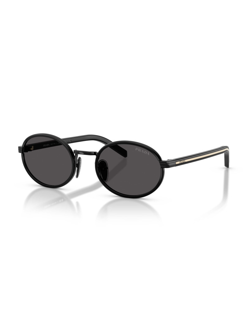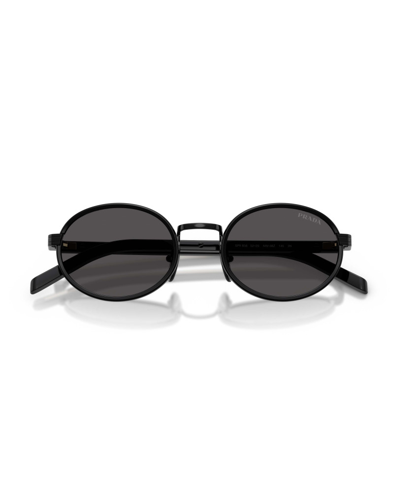 Occhiali da sole Prada B56S AAV08Z che presenta una montatura in metallo sottile abbinata a aste in acetato, arricchite da una placca allungata, disponibili in una varietà di eleganti combinazioni di colori. Perfetti per un look moderno e audace, sono l'accessorio ideale per chi cerca un'interpretazione innovativa della moda.