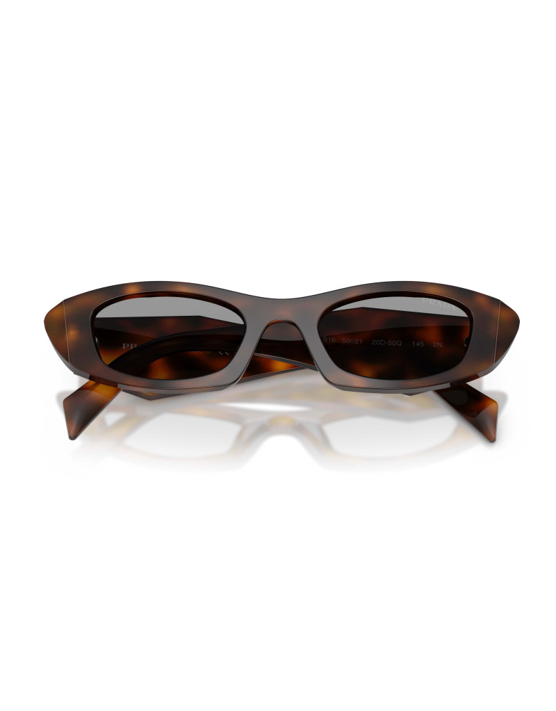 Occhiali da sole Prada B16S 20D50Q stretti e ovali riflettono l'eleganza e la modernità tipiche di Prada con il logo inciso in modo discreto. La combinazione armoniosa di colori tra lenti e acetato dona un aspetto sofisticato e raffinato.