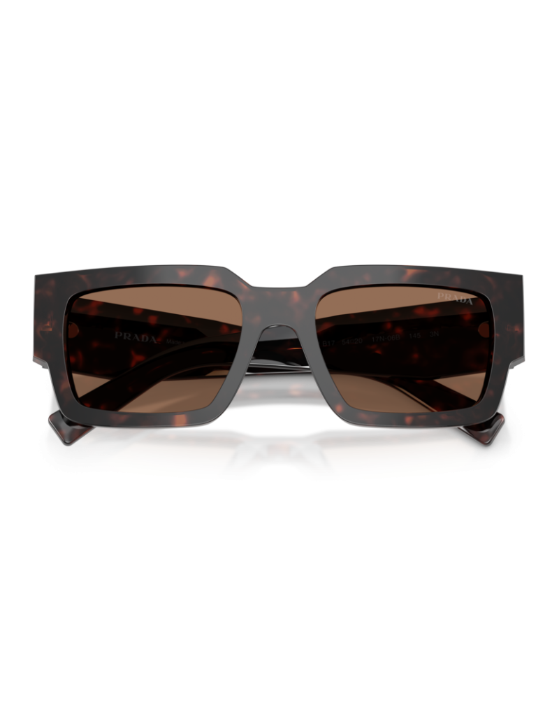 Occhiali da sole Prada B17S 17N06B, caratterizzati da una forma rettangolare e una costruzione di alta qualità. L'aspetto minimalista ma distintivo sono tipici della Maison, che si distingue per la sua attenzione ai dettagli e il design moderno, pensato per un pubblico alla ricerca di occhiali che esprimano individualità e stile unico.