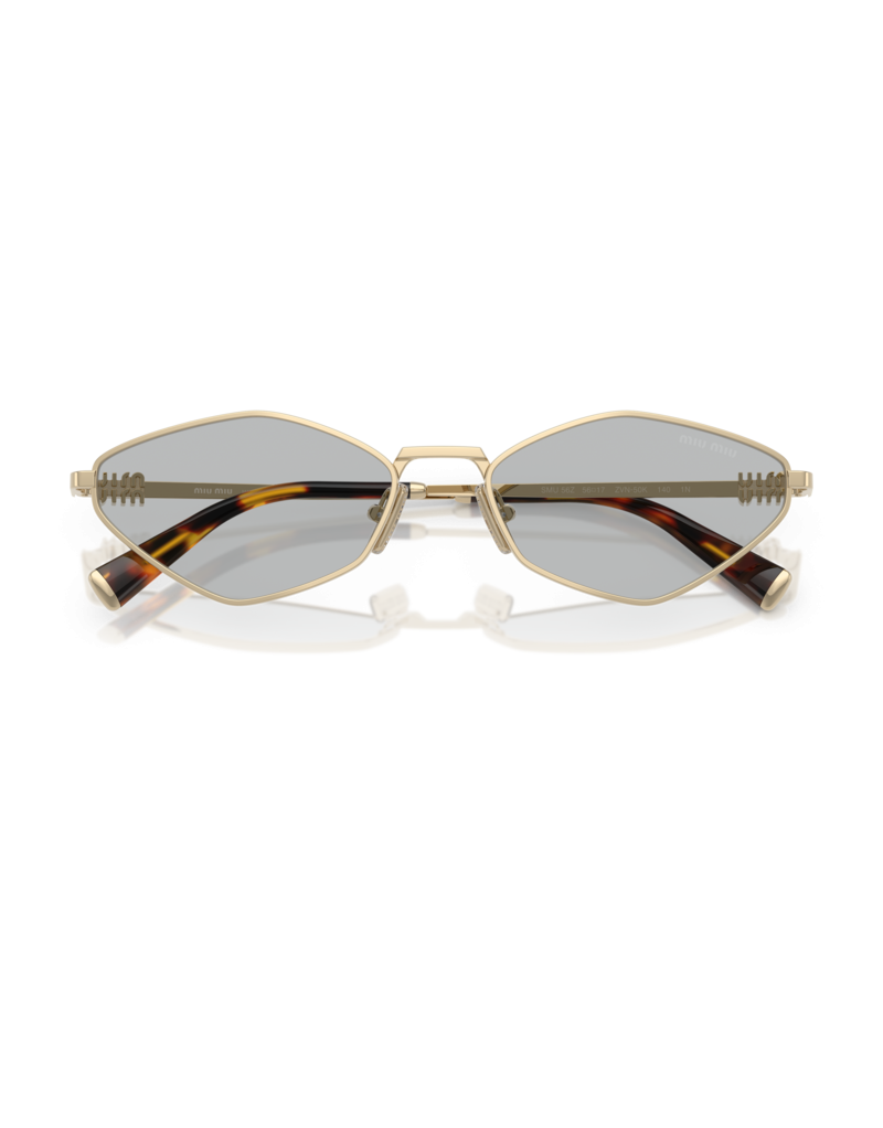 Occhiali da sole Miu Miu 56ZS ZVN50K per donna che presentano una forma butterfly, audace e femminile, che conferisce un tocco vintage e sofisticato al look. La montatura in metallo, con dettagli raffinati dorati, aggiunge un tocco di lusso e modernità, rendendo questi occhiali perfetti per ogni occasione. Il design distintivo di Miu Miu, combinato con una protezione UV di alta qualità, offre eleganza e funzionalità in un unico accessorio di tendenza.
