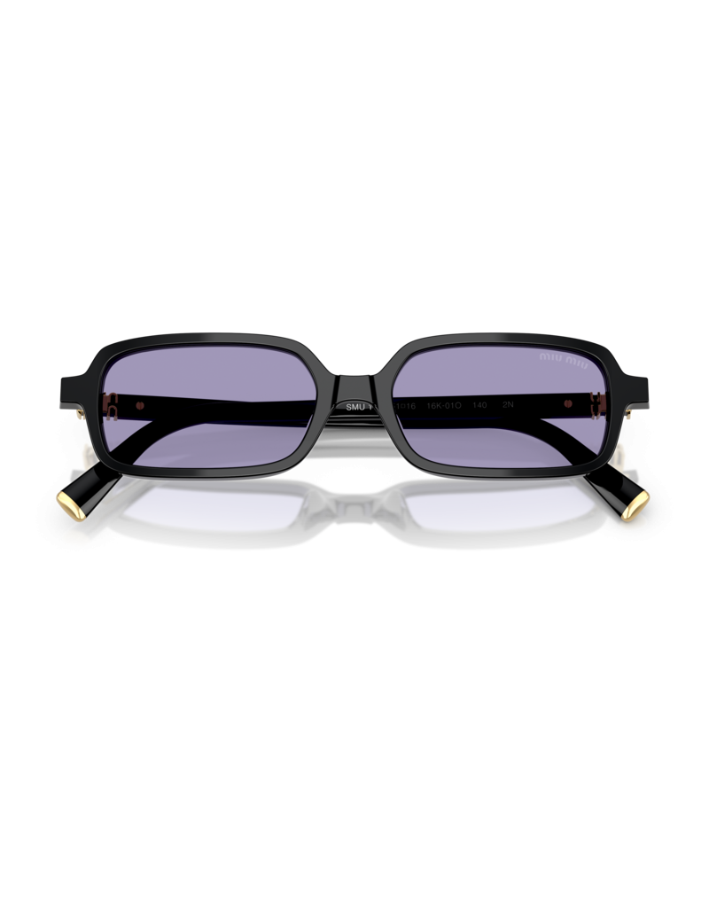 Occhiali da sole Miu Miu 11ZS 16K01O da donna con montatura in acetato nero. Un modello dalla forma rettangolare con lenti viola molto glamour per il proprio outfit.