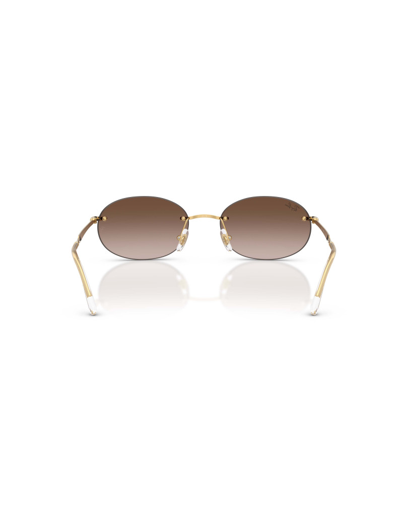 Occhiali da sole Ray-Ban 3767 001/13: montatura in metallo color oro, design ovale elegante e raffinato. Le lenti sono sfumate sui toni del marrone con protezione UV completa. Naselli regolabili per una vestibilità personalizzata e confortevole. Ideali per un look classico ma distintivo, adatto a uno stile sofisticato e versatile.