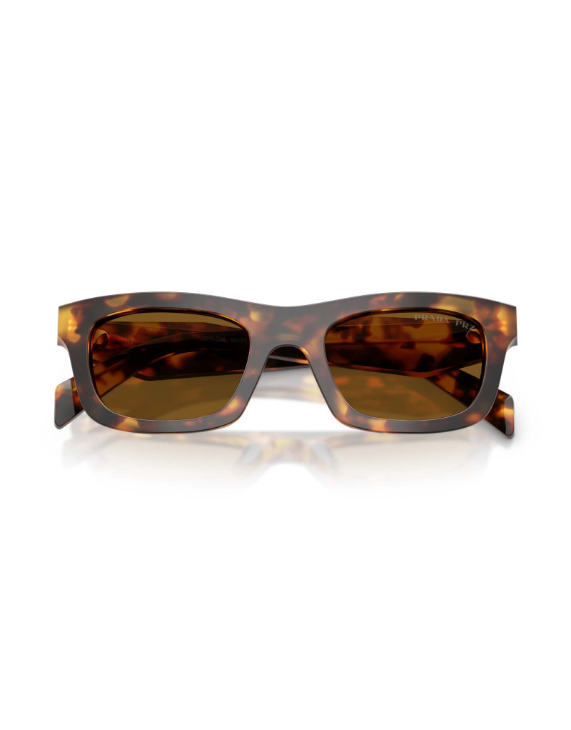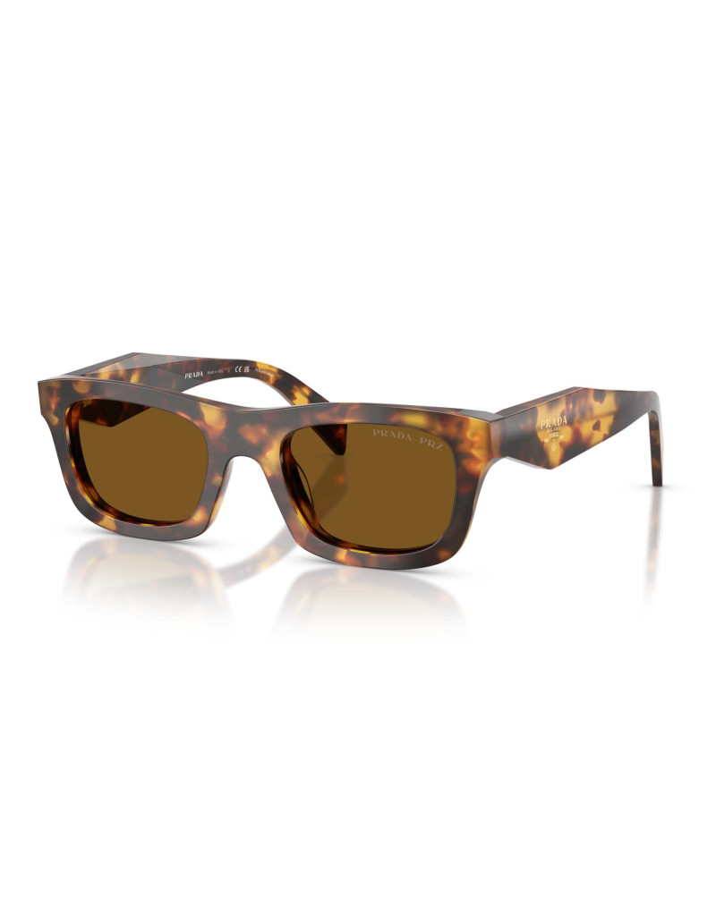 Occhiali da sole Prada C06S 14L10U da donna in acetato havana lucido arricchito da lenti marrone polarizzato per assicurare il 100% della protezione. Un modello dal design lineare e moderno dalla forma irregolare, arricchito dall’iconico logo Prada sulle aste. Un accessorio che si adatta ad ogni forma di volto, per uno stile glamour e alla moda.