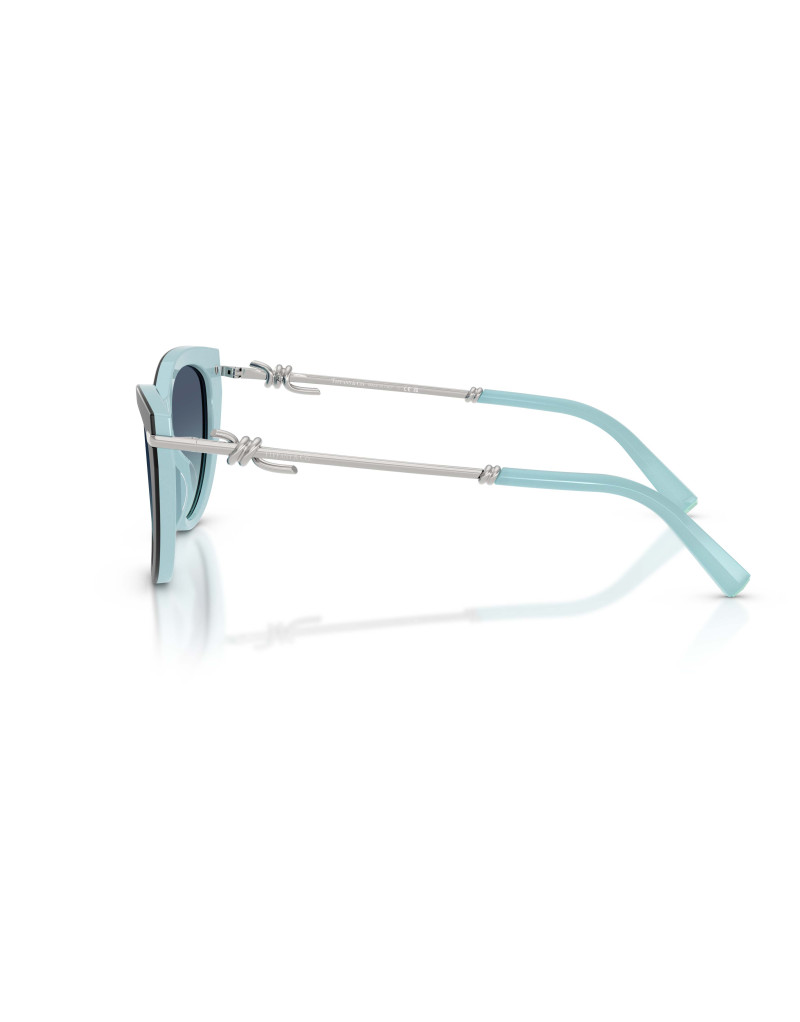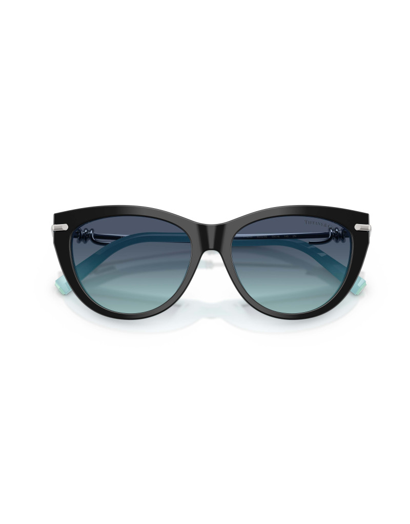 Occhiali da sole Tiffany & Co. 4253 da donna, dalla forma cat-eye, rappresentano l'incontro perfetto tra l'arte dell'occhialeria e quella della gioielleria in quanto presentano un dettaglio silver che si trasforma in una funzionale cerniera.. Un design sofisticato e distintivo che esprime l'inconfondibile lusso e stile della maison Tiffany.