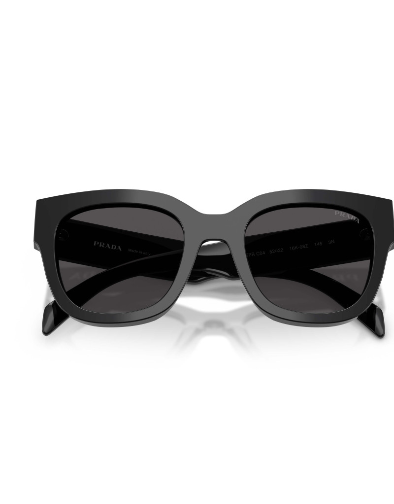 Occhiali da sole Prada C04S 16K08Z da donna con montatura in acetato lucido nero e lenti grigie. Un modello squadrato che si distingue per il suo design disceto ma elegantesfaccettato delle aste, adatto per ogni tipologia di volto.