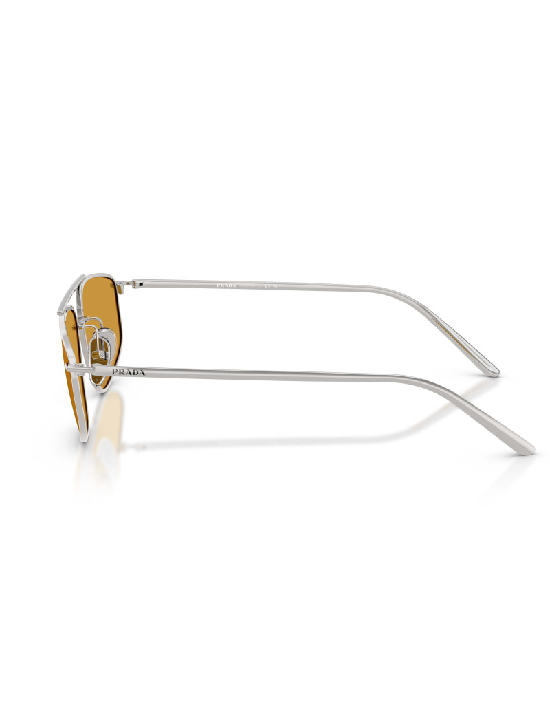 Occhiali da sole Prada C15S 1BC50P con montatura in metallo argento e lenti color miele. Un design geometrico dalle linee semplici e dalla forma pilot stretta, con firma Prada in contrasto sulle aste. Un modello originale che conferisce uno stile unico ad ogni look.