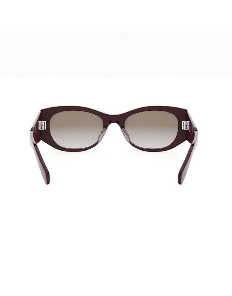 La nuova forma rettangolare del modello Celine CL40329U 48b rappresenta un’evoluzione sofisticata della linea CELINE 3 Dots, arricchendone la gamma con un design deciso, minimale e perfettamente in linea con il DNA della Maison. La montatura in acetato lucido bordeaux si distingue per le linee nette e l’equilibrio delle proporzioni, che donano carattere senza appesantire il volto. Il colore grigio sfumato delle lenti esalta la profondità del materiale, mentre l’inconfondibile firma dei tre punti metallici sulle aste aggiunge un tocco iconico e riconoscibile.
