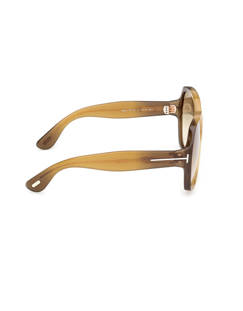 Occhiali da sole Tom Ford FT1221 41F della linea Saffron, un modello di eleganza e audacia che si incontra. Con una forma quadrata oversize e una montatura in acetato giallo sfumato, questi occhiali da sole offrono un look sofisticato e contemporaneo, perfetto per chi desidera distinguersi con stile.