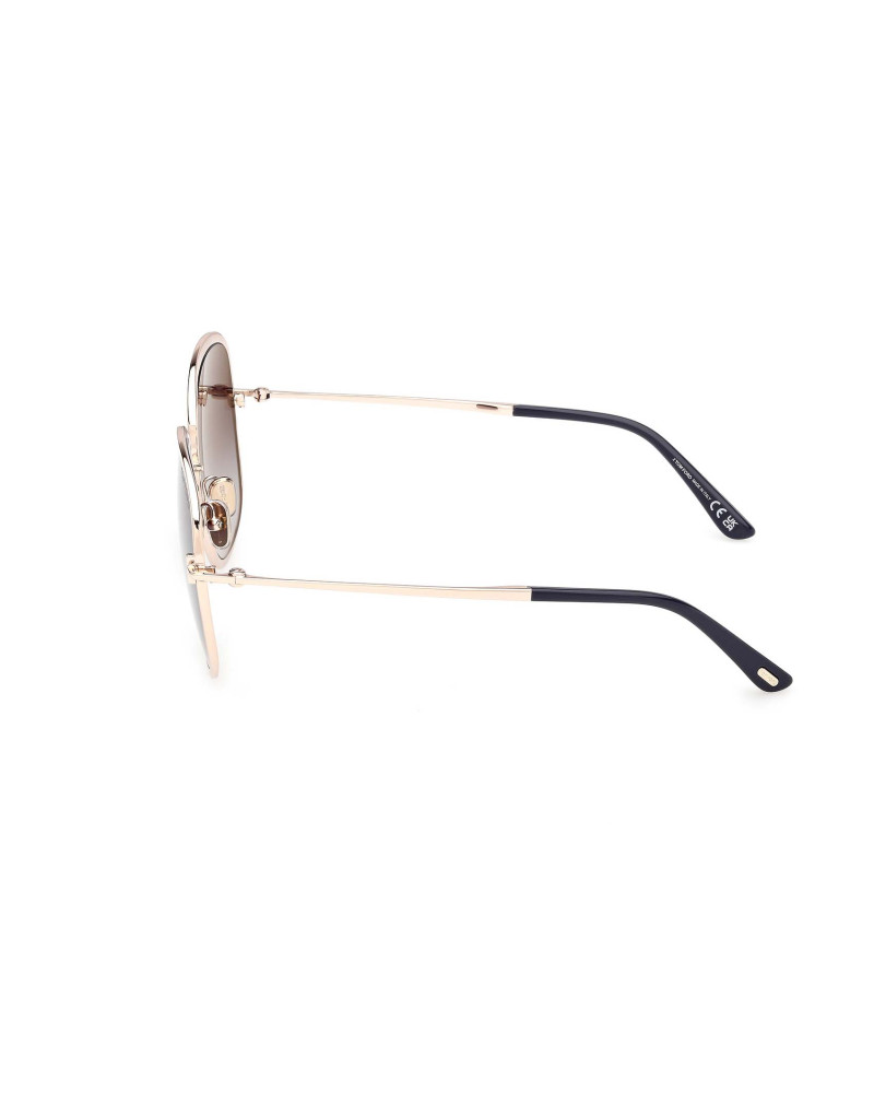 Occhiali da sole Tom Ford FT1320, un modello da donna caratterizzato da una montatura in metallo oro rosè lucido e lenti blu. La forma rotonda conferisce un aspetto elegante e sofisticato, adatto a diverse tipologie di viso. Questo modello appresenta un accessorio di alta qualità, ideale per chi cerca un design sofisticato e una protezione solare efficace. La loro versatilità li rende adatti a diverse occasioni, dal quotidiano agli eventi speciali.