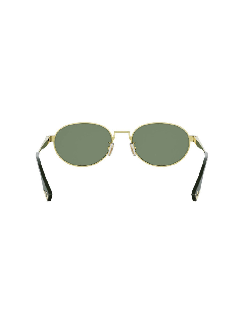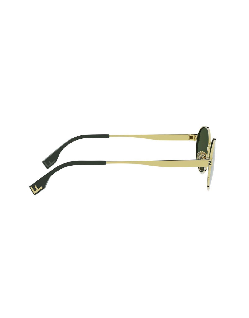 Occhiali da sole Fendi FE40180U 30N, evoluzione della linea Fendi Sky. Questo modello ovale in metallo si ispira allo stile vintage, combinando leggerezza e comfort con un design ricercato. Il logo FF è reinterpretato in una nuova versione posizionata tra le lenti, mentre le aste sottili in metallo, inclinate con eleganza, conferiscono al modello un tocco distintivo e sofisticato.
