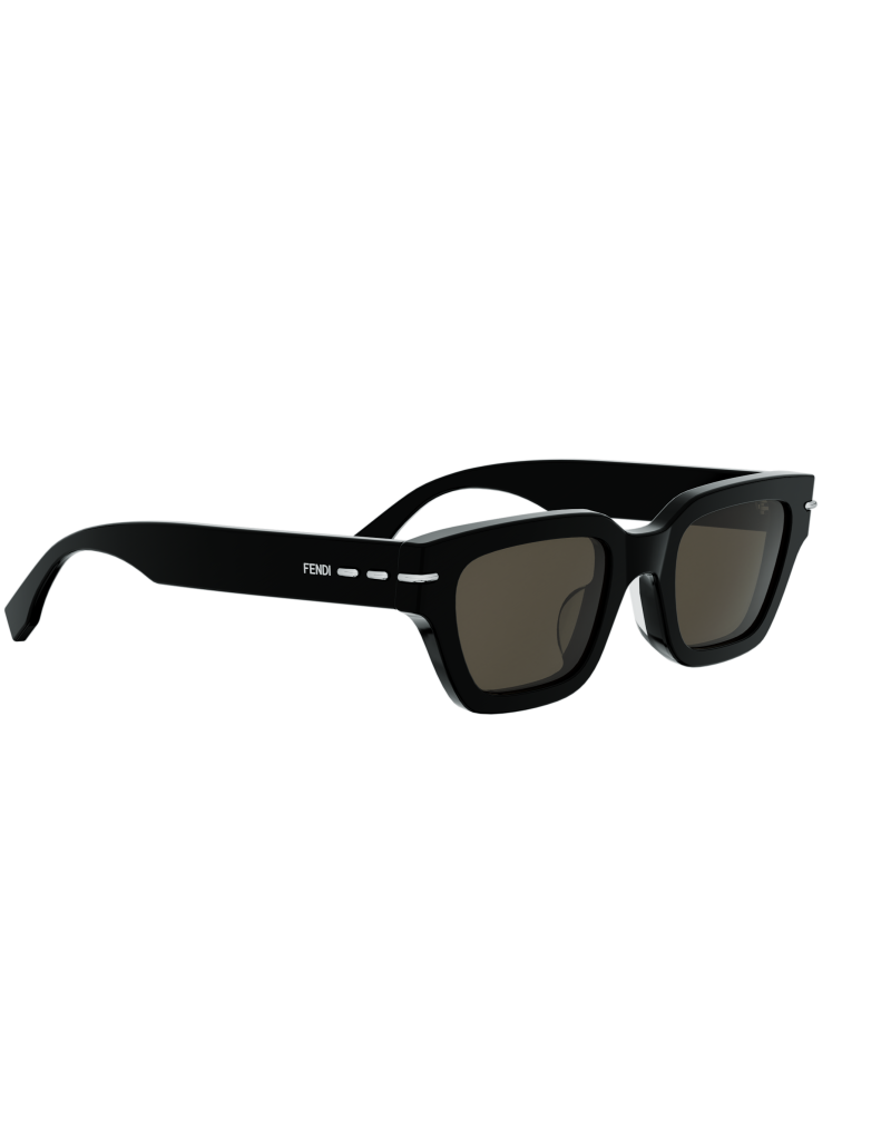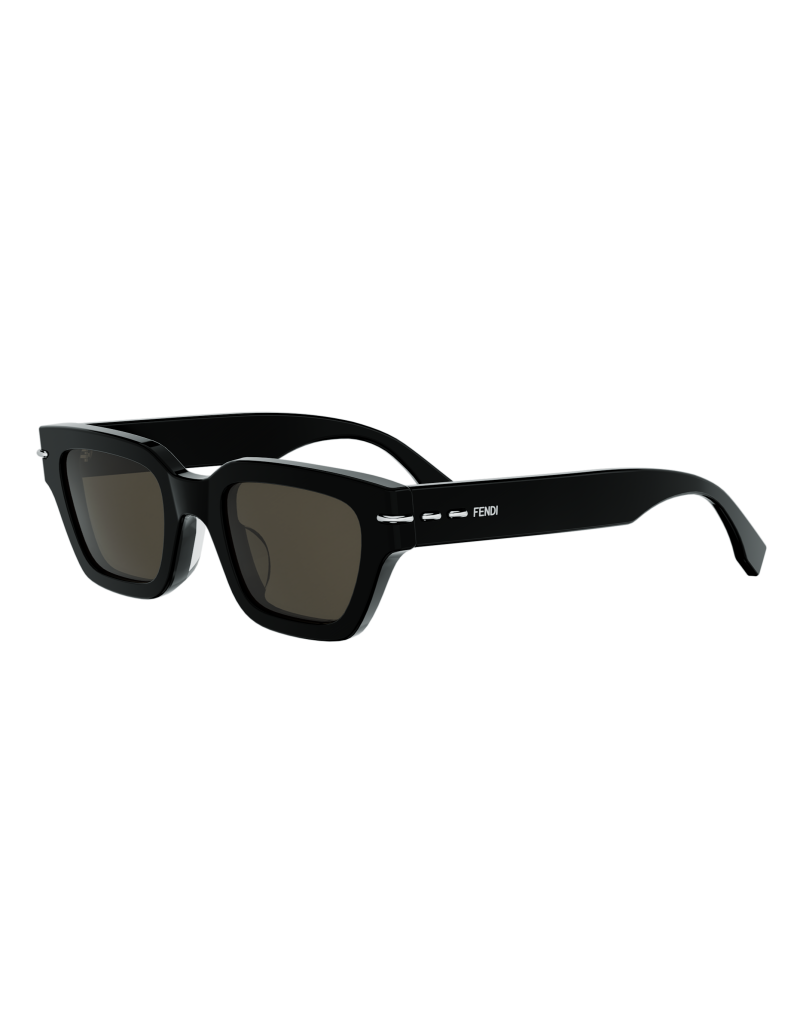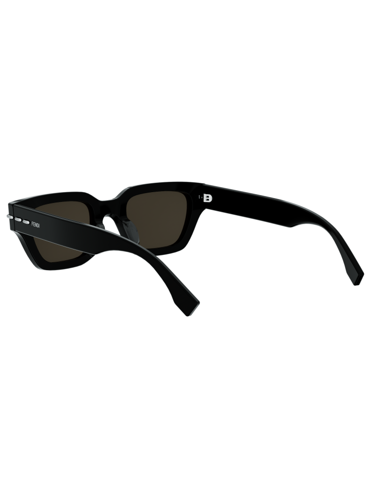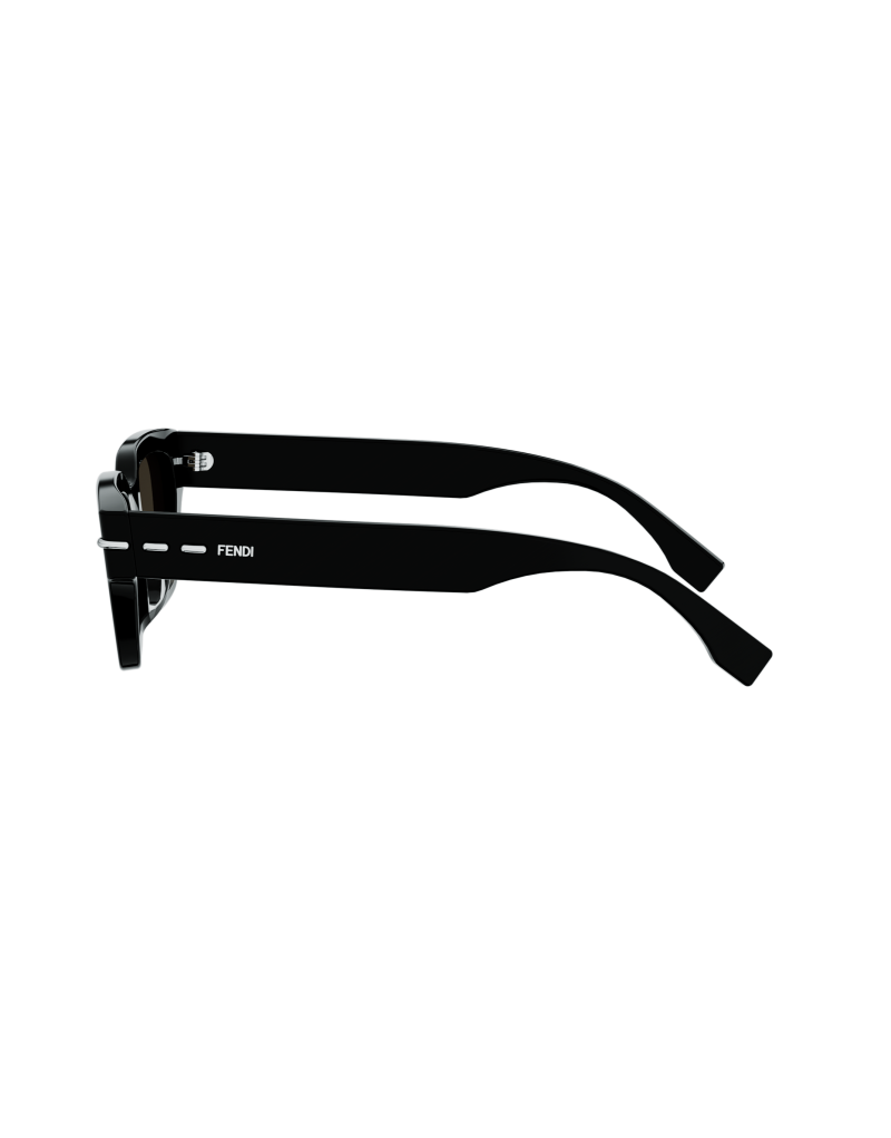 Occhiali da sole Fendi FE40191U 01e, un modello realizzato in acetato nero lucido, che presenta una forma rettangolare dal design pulito, arricchita dalle iconiche impunture in metallo Fendi Selleria, visibili su aste e frontale. Un accessorio che unisce eleganza discreta e dettagli di alta artigianalità.