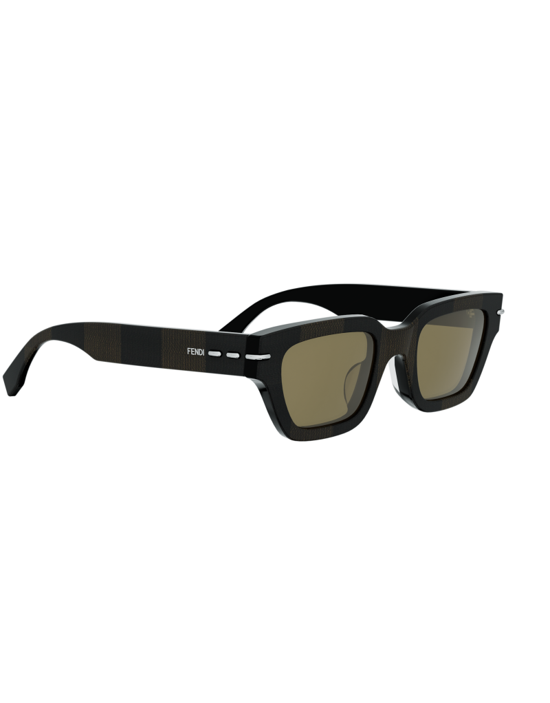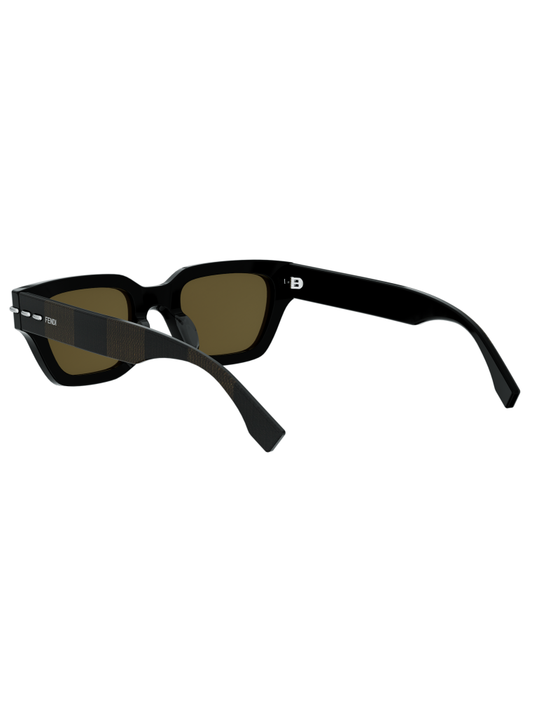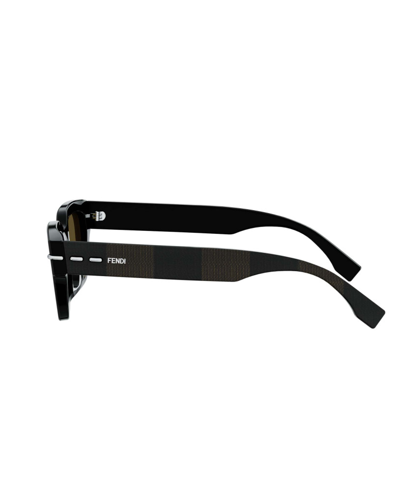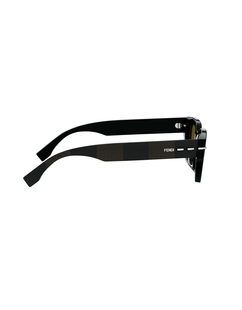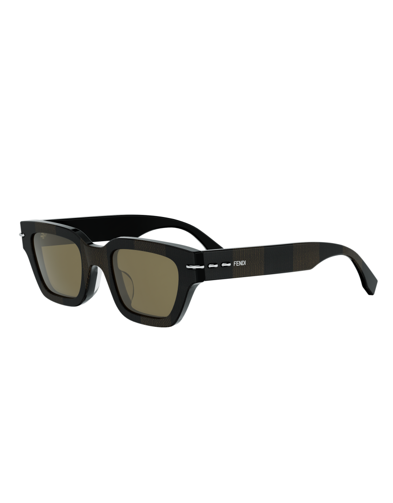 Occhiali da sole Fendi FE40191U 50e, un modello realizzato in acetato marrone lucido, che presenta una forma rettangolare dal design pulito, arricchita dalle iconiche impunture in metallo Fendi Selleria, visibili su aste e frontale. Un accessorio che unisce eleganza discreta e dettagli di alta artigianalità.