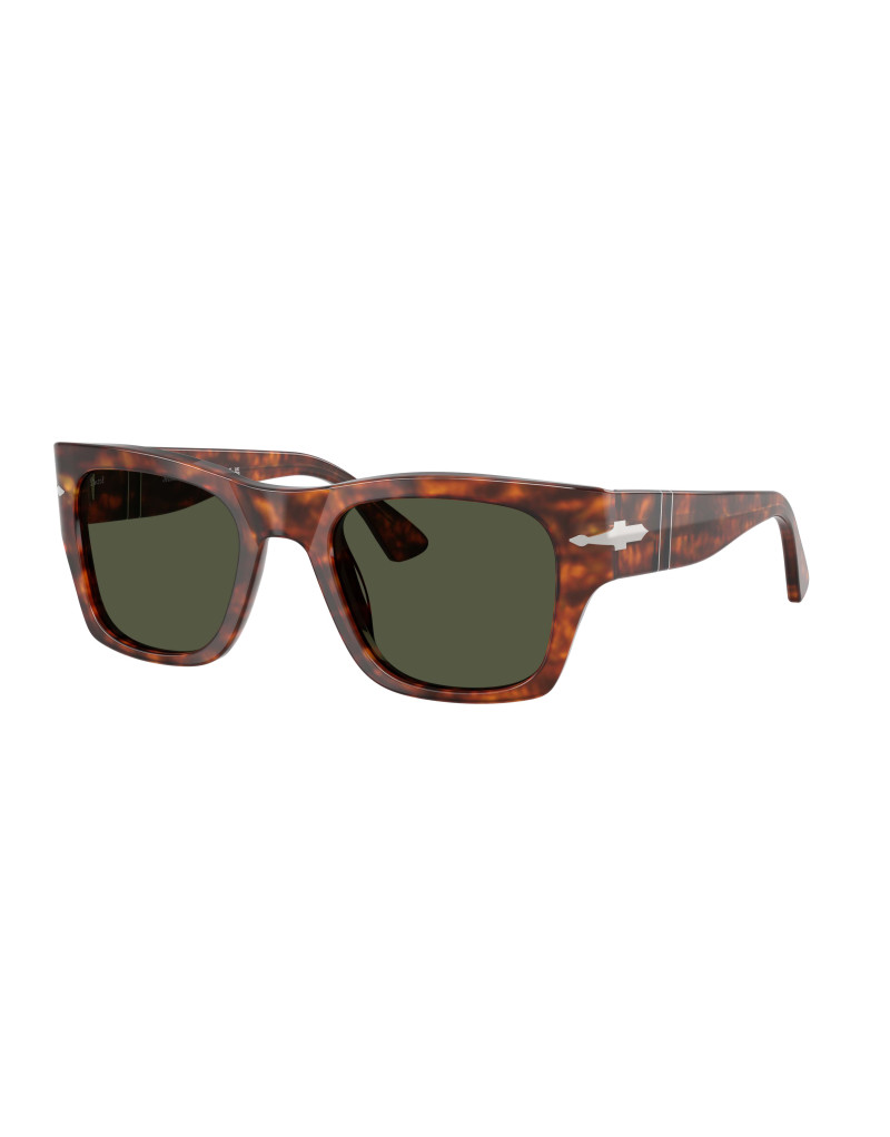 Gli occhiali da sole Persol 3384S 24/31 incarnano un’eleganza discreta e autentica, pensata per chi ama distinguersi con raffinatezza. La montatura in acetato, dal mood squadrato ma morbido nei profili, si declina in una calda tonalità havana che si adatta con naturalezza a molteplici incarnati. Le lenti verdi in cristallo non solo garantiscono protezione, ma aggiungono uno sguardo profondo e sereno all’intero volto.