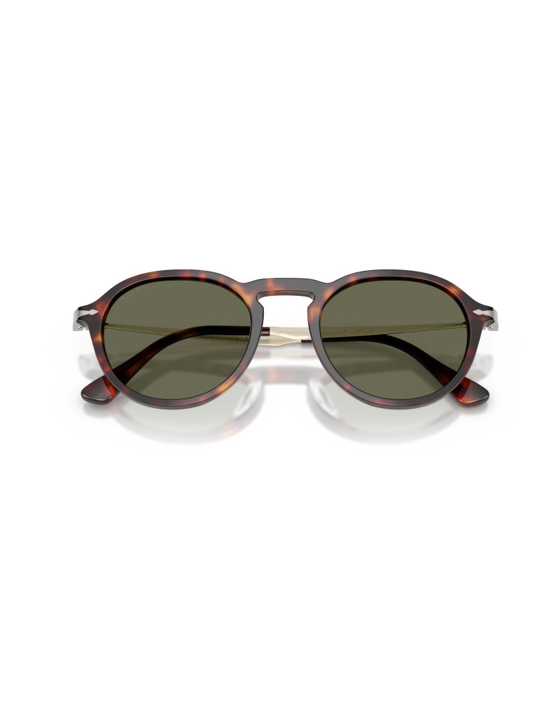 Occhiali da sole Persol 3383S 24/58 è un modello che unisce l’eleganza senza tempo del marchio Persol con un design raffinato e sobrio. La montatura, in acetato havana lucido, accoglie lenti in vetro polarizzato verde che garantiscono protezione e stile. La forma phantos e il ponte alto donano al modello una presenza distintiva ma equilibrata, perfetta per chi ama un look curato senza ostentazione.