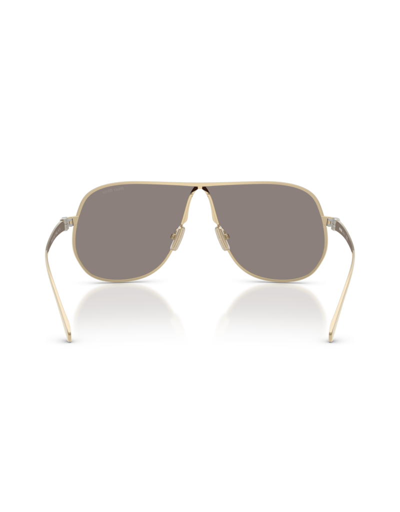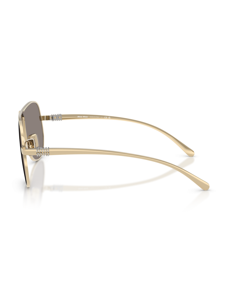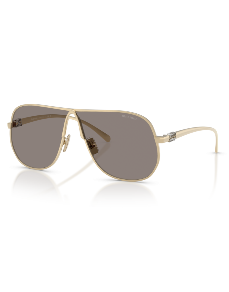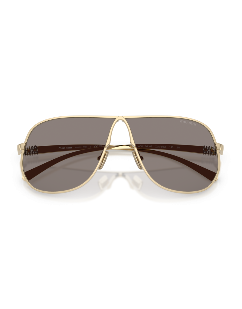 Occhiali da sole Miu Miu A57S ZVN80Q dalla montatura vintage ampia in metallo color oro, che dona un tocco di lusso e raffinatezza al design. Le lenti grigie aggiungono un accento di freschezza e originalità e la loro forma squadrata viene messa in risalto dal particolare disegno del ponte, completando il look con un'eleganza discreta. Il logo Miu Miu è in argento, in contrasto con il colore delle aste, un dettaglio ideale per chi cerca un accessorio che unisca stile moderno e sofisticato. Un modello distintivo e di tendenza per un look unico e chic.