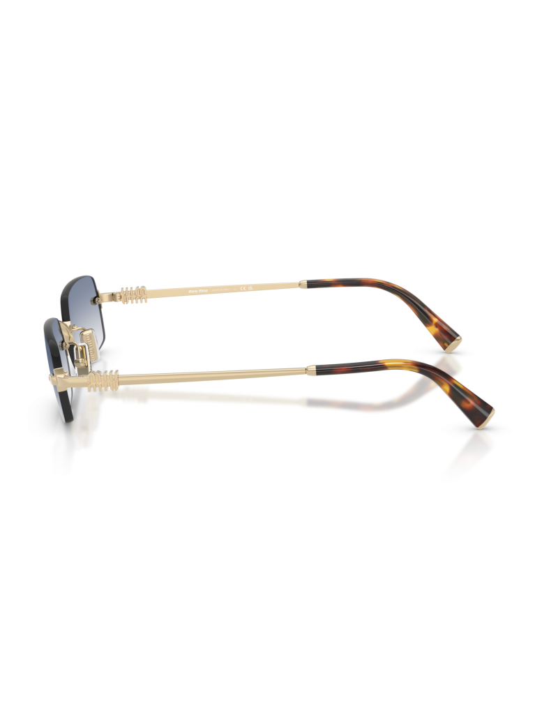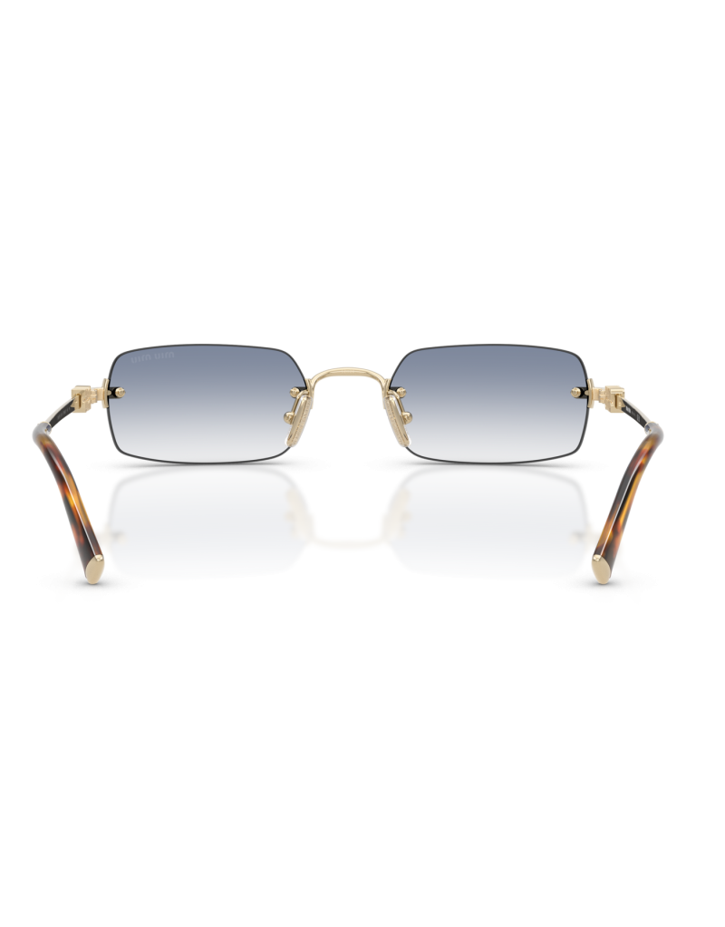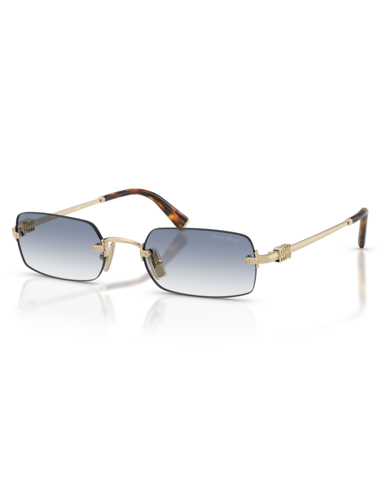 Occhiale da sole Miu Miu B50S ZVN80O dalla forma rettangolare elegante e adatto a tutte le occasioni. Il frontale senza montatura mette in primo piano lo sguardo con raffinatezza, le aste oro con dettaglio logo stilizzato conferiscono comfort e sofisticatezza al tempo stesso.