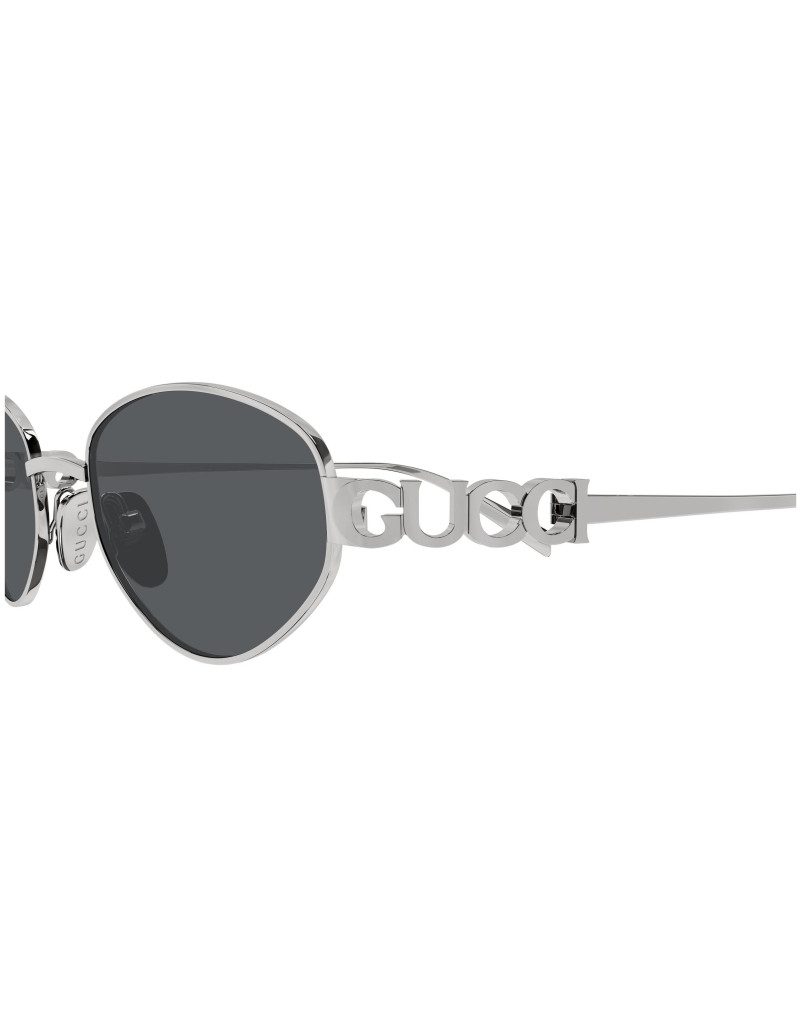 Occhiali da sole Gucci GG1935S 00, una montatura in metallo rutenio chiaro dalla forma ovale, con lenti grigie tinta unita che donano eleganza e charme discreto. Un accessorio perfetto per chi ama uno stile raffinato e contemporaneo, capace di valorizzare il volto con sobrietà e carattere.