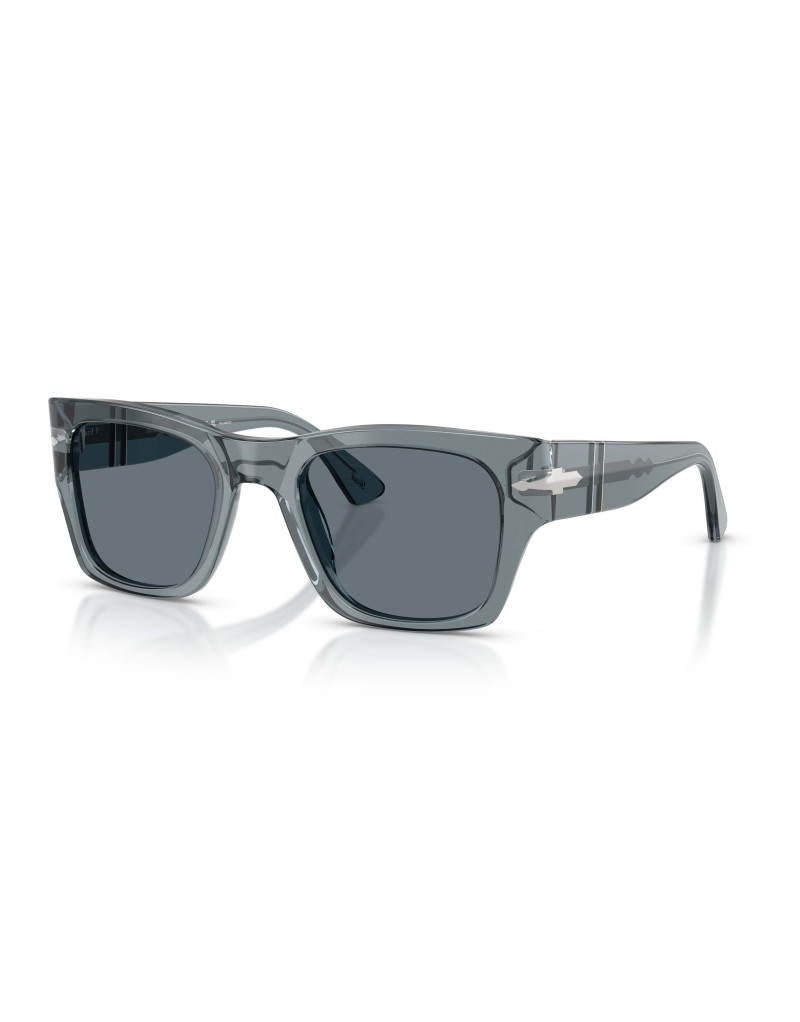 Occhiali da sole Persol PO3384S 12273R: un modello elegante in acetato trasparente “ocean” con lenti polarizzate blu‑scuro, pensato per offrire copertura ampia del viso. Realizzati in Italia, un accessorio distintivo per chi ama stile e qualità.