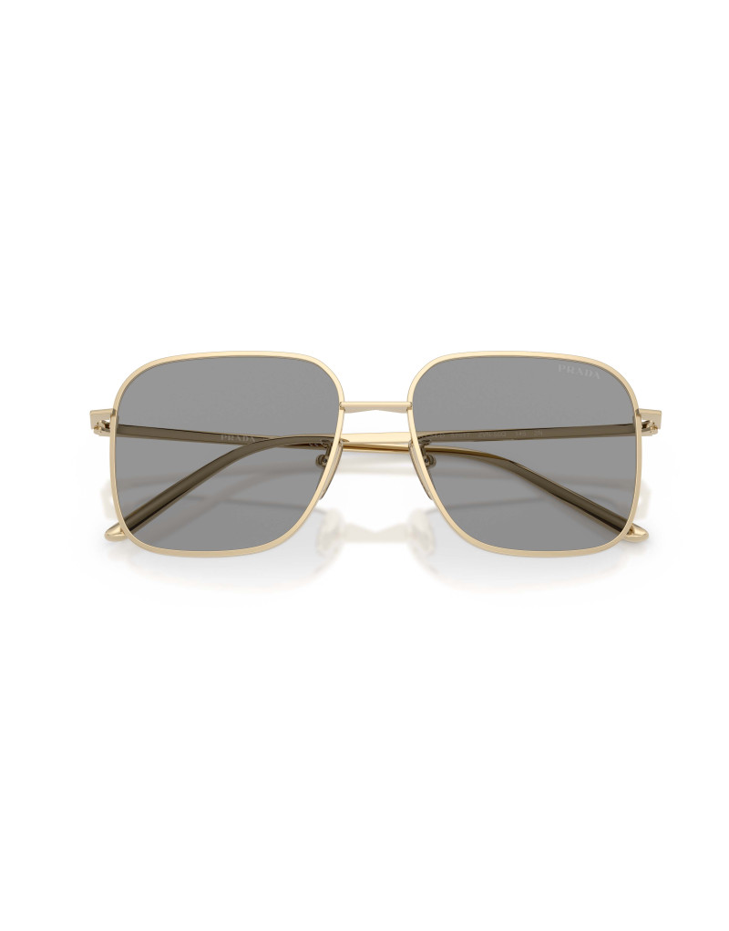 Gli occhiali da sole Prada C54SD ZVN50Q presentano una montatura squadrata oversize in metallo dorato con lenti grigie, perfette per uno sguardo sofisticato e protetto. Le aste sottili con dettagli dorati conferiscono un tocco di eleganza discreta, rendendo questo modello ideale per chi cerca un accessorio di lusso raffinato e contemporaneo.