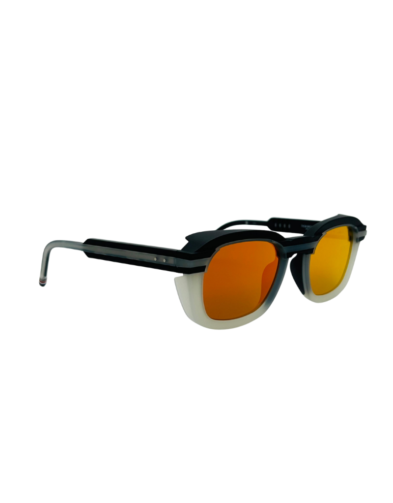 Gli occhiali da sole Thom Browne UES940A 104 esprimono uno stile sofisticato e deciso, grazie a una montatura nera e bianca dal design architettonico che riflette l’eleganza minimalista del brand. Le lenti arancione specchiato assicurano protezione e un look contemporaneo, mentre i dettagli iconici aggiungono un carattere distintivo. Perfetti per chi cerca occhiali da sole esclusivi, di alta qualità e dall’estetica inconfondibile.