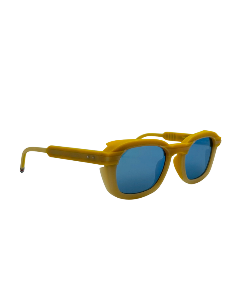Gli occhiali da sole Thom Browne UES940A 735 esprimono uno stile sofisticato e deciso, grazie a una montatura gialla dal design architettonico che riflette l’eleganza minimalista del brand. Le lenti azzurre assicurano protezione e un look contemporaneo, mentre i dettagli iconici aggiungono un carattere distintivo. Perfetti per chi cerca occhiali da sole esclusivi, di alta qualità e dall’estetica inconfondibile.