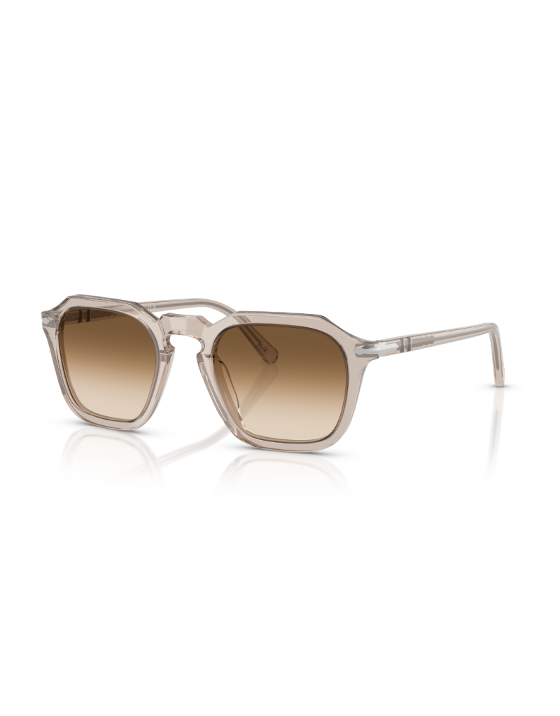 Occhiali da sole Persol 3292S 124051 con montatura in acetato lucido marrone trasparente, dal design squadrato, sottile e giovanile. L’occhiale vanta la lente in cristallo ton-sur-tone che assicura un ottimo comfort nelle condizioni di forte luminosità e una tenuta del colore attraverso gli anni.
