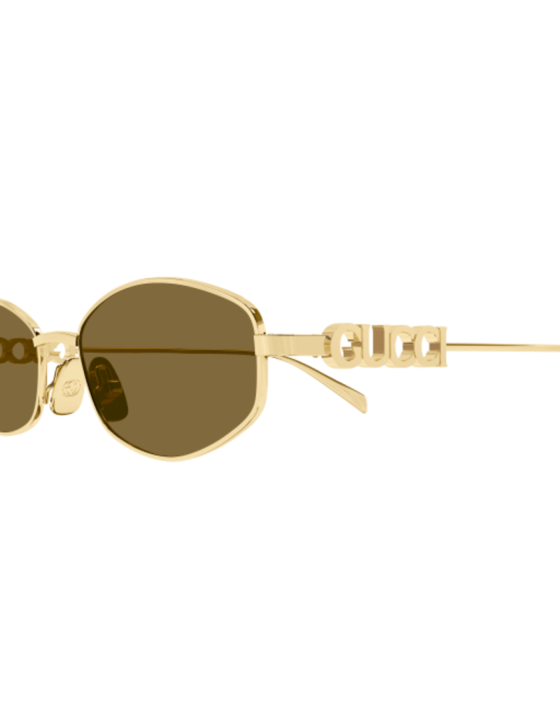 Gli occhiali da sole Gucci GG1802S 005 esprimono un’estetica audace e sofisticata, perfetta per una donna che ama distinguersi con dettagli di carattere. Il design dalla forma irregolare dona un look moderno e ricercato, cifra stilistica iconica della maison Gucci. La montatura in metallo conferisce leggerezza ed eleganza, mentre le lenti marroni assicurano una protezione efficace dai raggi solari e una visione calda e confortevole. Un modello dal forte impatto visivo, ideale per completare outfit contemporanei con un tocco fashion e deciso. Un accessorio di lusso che unisce stile, qualità e personalità.