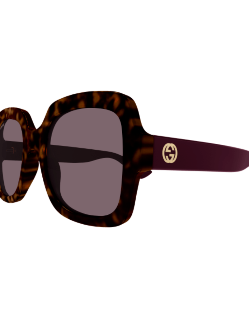 Gli occhiali da sole Gucci GG1337S 009 uniscono carattere deciso e raffinatezza contemporanea. La forma squadrata dona personalità e struttura al volto, rendendo il modello ideale per una donna che ama uno stile audace e di tendenza. La montatura in iniettato color Havana crea un raffinato gioco cromatico, sofisticato e originale. Le lenti viola completano il design con un tocco fashion distintivo, offrendo al tempo stesso una protezione efficace dai raggi solari e una visione confortevole. Un accessorio di forte impatto estetico, perfetto per valorizzare look moderni e ricercati.