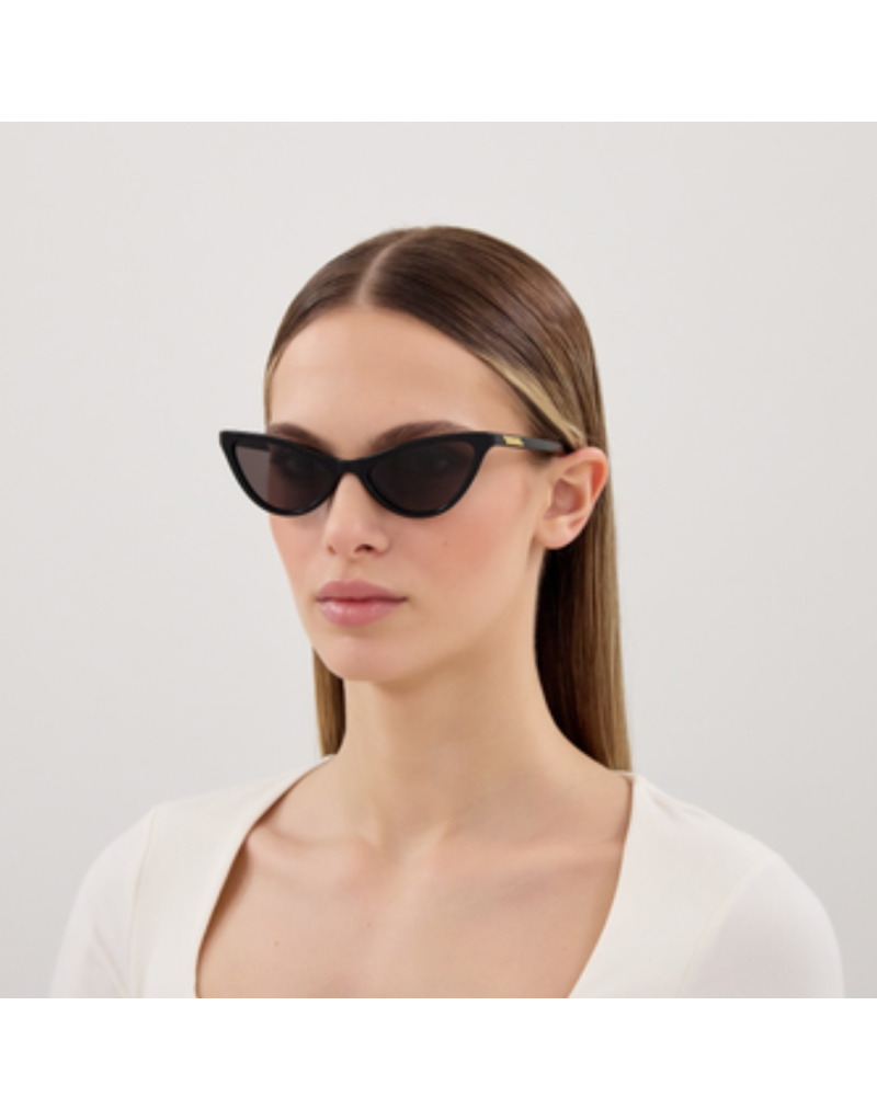 Gli occhiali da sole Bottega Veneta BV1414S 001 esprimono un’eleganza decisa e contemporanea, perfetta per una donna che ama distinguersi con stile. Il design cat eye valorizza i lineamenti del viso, mentre la linea pulita dona un tocco sofisticato e iconico, in pieno DNA Bottega Veneta. La montatura in acetato nero garantisce comfort, resistenza e una finitura lucida di grande impatto. Le lenti grigie assicurano una protezione ottimale dai raggi solari, mantenendo una visione nitida e naturale, ideali per l’uso quotidiano e le occasioni più glamour.