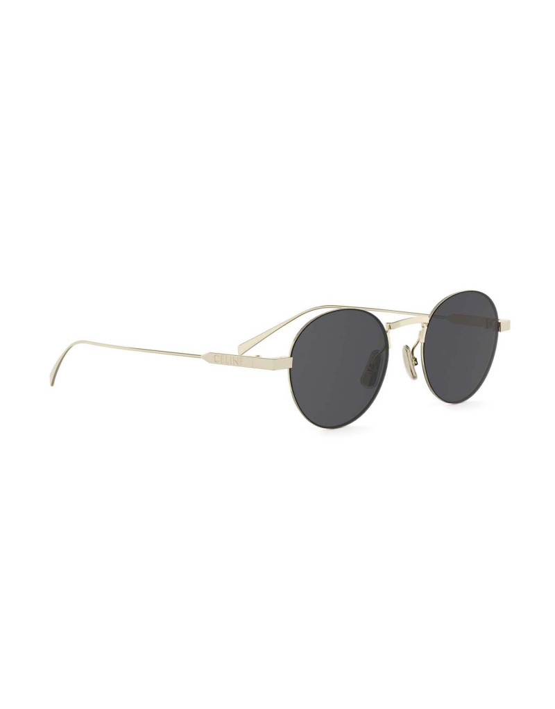Occhiali Celine CL40346U 32a da sole dal design minimalista con montatura in metallo oro e lenti grigie. La forma rotonda raffinata e il logo discreto sulle aste esprimono uno stile contemporaneo e sofisticato, perfetto per look chic e moderni. Materiali di alta qualità e comfort quotidiano rendono questo modello ideale per chi cerca fashion e leggerezza in un accessorio di lusso.
