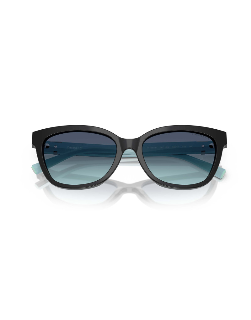 Occhiali da sole Tiffany & Co. 4237B 80019S donna con elegante montatura cat-eye in acetato nero e lenti blu sfumato, perfetti per uno stile femminile e sofisticato. Un modello raffinato che unisce design iconico e comfort per valorizzare ogni look.