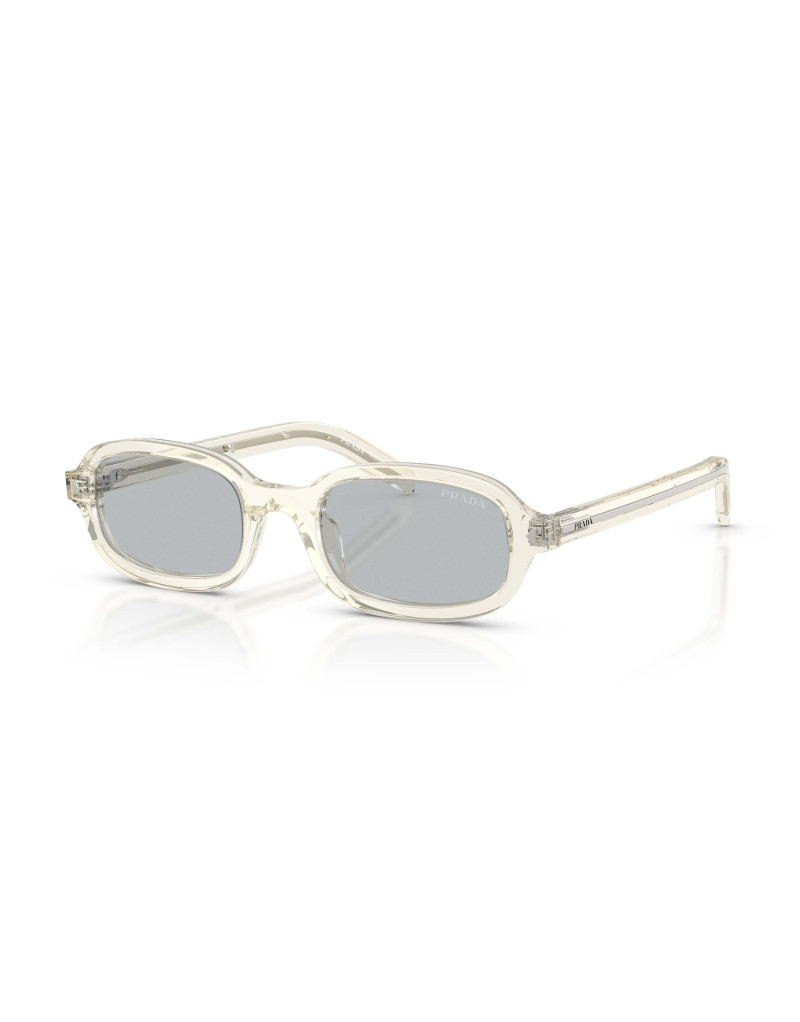 Occhiali da sole Prada D06S 12X40W: elegante modello femminile con montatura full rim in acetato trasparente color champagne, leggera ma robusta, perfetta per chi ama un tocco di stile sofisticato e luminoso. La forma ovale delicata avvolge il viso con armonia, aggiungendo un’allure elegante e contemporanea a qualsiasi outfit. Le lenti grigie chiare offrono protezione UV e comfort visivo, rendendo questi occhiali ideali per giornate all’aperto con un look chic e raffinato. Un accessorio distintivo che unisce moda e funzionalità per chi desidera eleganza senza tempo.