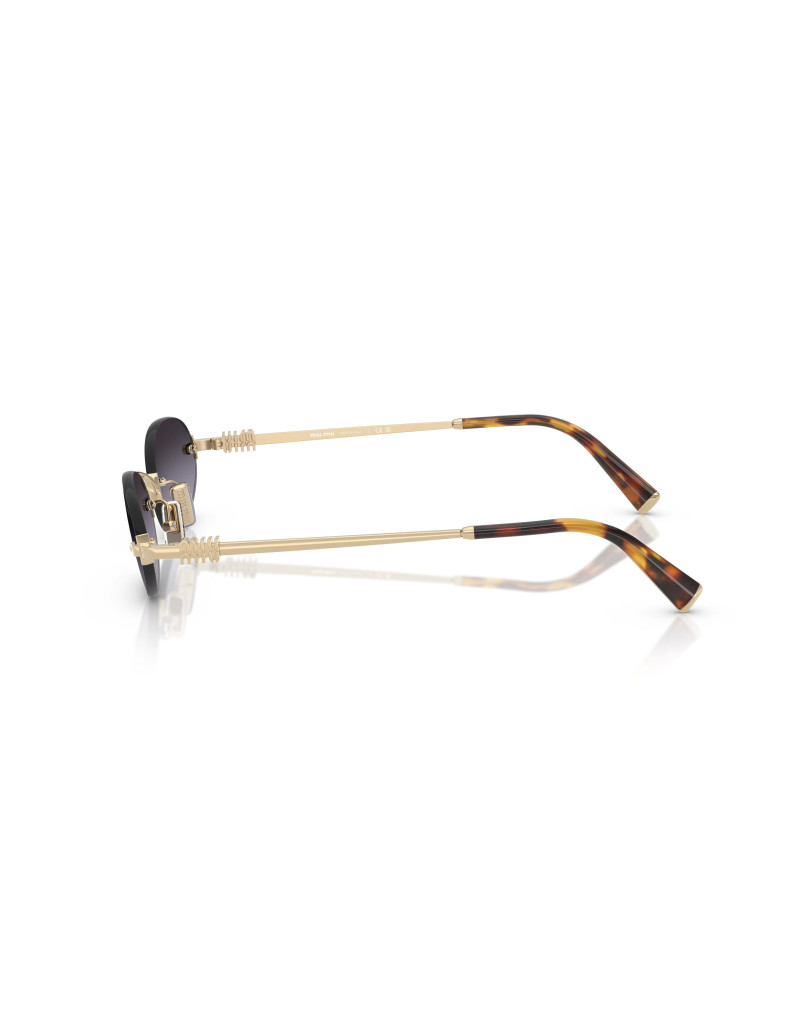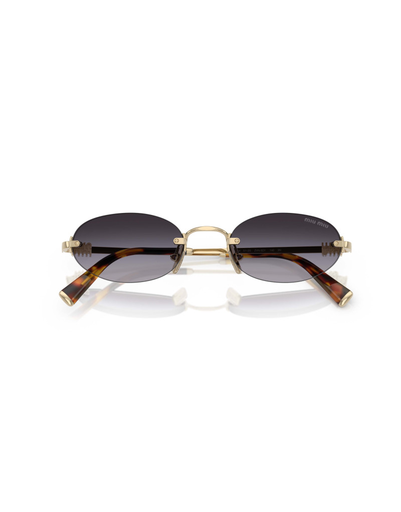 Occhiali da sole Miu Miu MU A54S ZVN5D1, una montatura in metallo color oro pallido, sottile e luminosa, abbinata a lenti grigie sfumate per una protezione confortevole e naturale. La forma ovale elegante e moderna dona un tocco di sofisticata leggerezza al volto, perfetta per chi ama accessori distintivi con un’estetica femminile e di carattere. Ideali per completare look raffinati con un tocco di glamour contemporaneo.