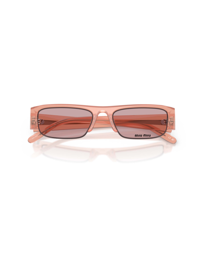 Occhiali da sole Miu Miu MU B07S 20I60V, una montatura in acetato rosa opaline, luminosa e femminile, abbinata a lenti rosa per una protezione solare confortevole e naturale. La forma semi-rimless, elegante e leggera, crea un look chic e distintivo, perfetto per chi ama accessori fashion che catturano l’attenzione in ogni occasione.
