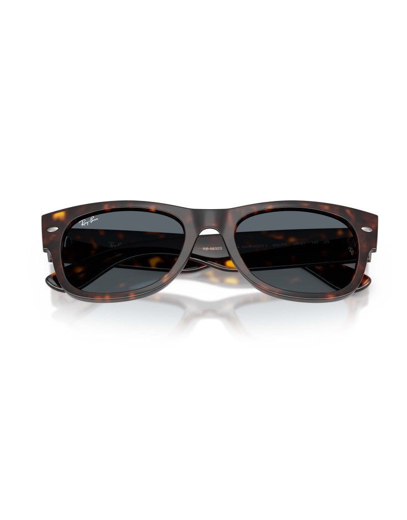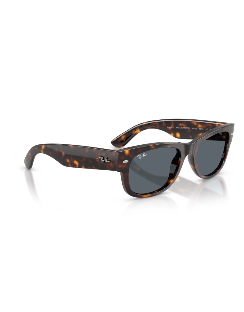 Occhiali da sole Ray-Ban 0832S 902/r5, una montatura in acetato color havana, calda e di grande impatto, abbinata a lenti blu in vetro che offrono protezione e una visione confortevole. La forma squadrata oversize, tipica del modello Mega Wayfarer II, reinterpreta un’icona in chiave più audace e contemporanea, perfetta per chi vuole distinguersi con uno stile deciso e urbano.