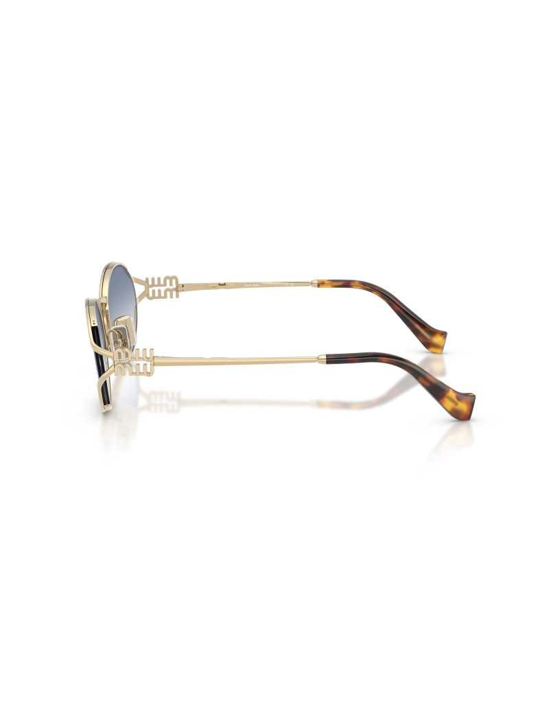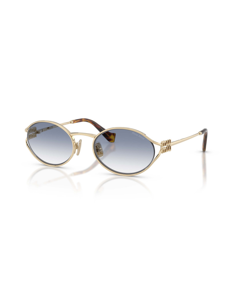 Occhiali da sole Miu Miu 52YS ZVN80O: una montatura in metallo color oro lucido, sottile e luminosa, abbinata a lenti blu sfumate per una protezione confortevole. La forma ovale, elegante e femminile, dona un tocco di sofisticata leggerezza al volto. Ideali per chi cerca un accessorio distintivo e di carattere, perfetto per completare look raffinati con un tocco di glamour.