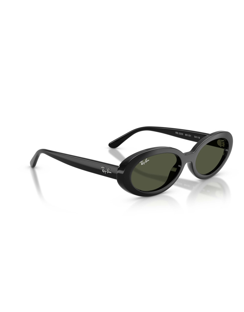 Occhiali da sole Ray-Ban 2223 901/31 54 una montatura in acetato nero lucido, sofisticata, abbinata a lenti verdi in cristallo che garantiscono una visione nitida e naturale. La forma ovale, morbida ed equilibrata, dona un look raffinato con un tocco rétro, perfetto per chi cerca eleganza discreta e versatilità quotidiana